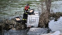 Übungsszenario war ein gebrochener Dieseltank, wo Diesel in die Traun austrat. Ziel war es, rasch Maßnahmen zu setzen, um eine Gewässerverschmutzung zu verhindern.